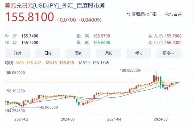 日本在4月29日,日元直冲160的历史重要点位时,进行了一次大规模干预,动用了大约5万亿日元,日元汇率一口气从160升值回154.5。