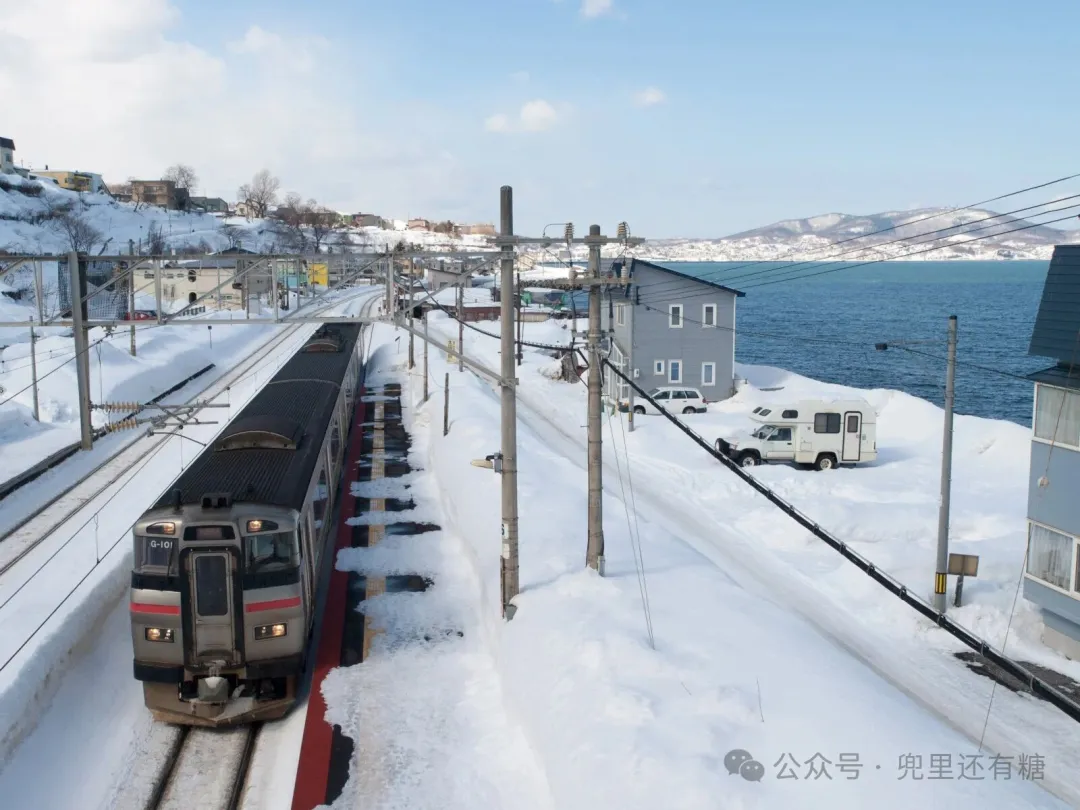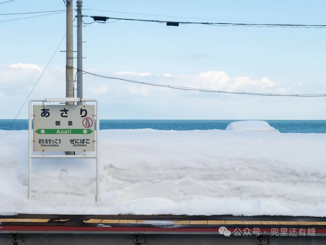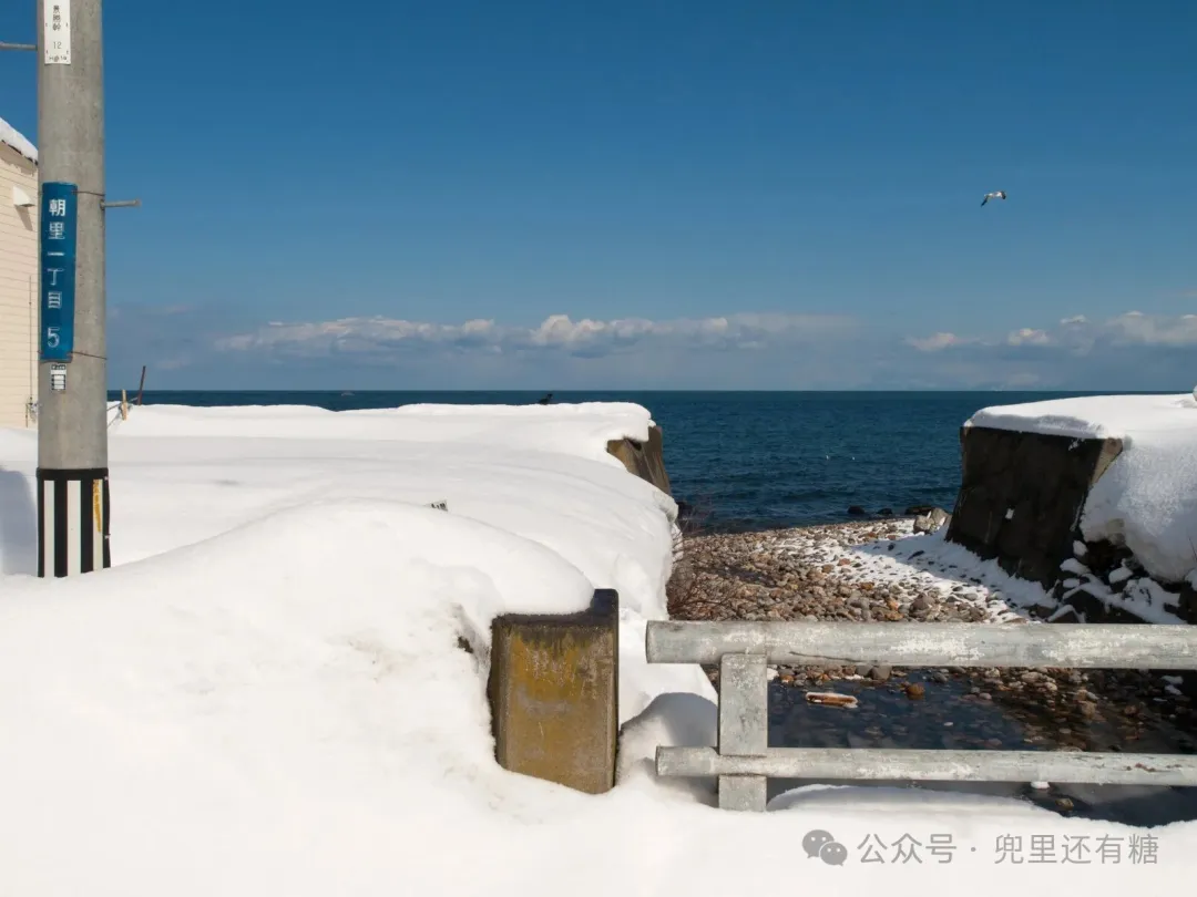 从札幌乘坐函馆本线前往小樽方向的话,右手边有一段可以近距离看到石狩湾的路段。朝里站就在路上。一下车,站台外就是一望无际的大海,令人难以置信,这里距札幌仅30分钟路程。当三月份的北海道站台上看到积雪堆积起来时,我就迫不及待地等待春天的到来。