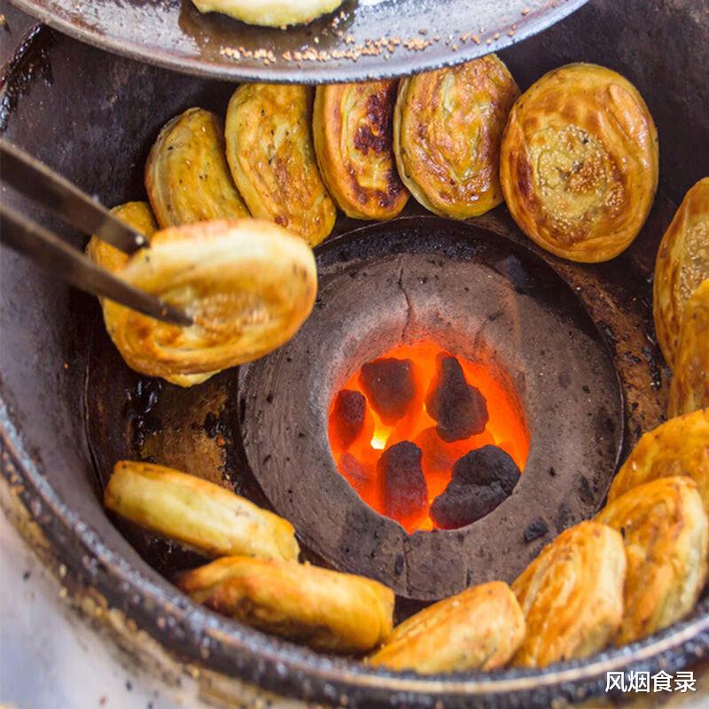 清朝谢子金改良白面锅盔,民国王千益加椒盐葱花,后经马福才用香水井井水揉入肉末猪板油,创出“千层酥”口感。