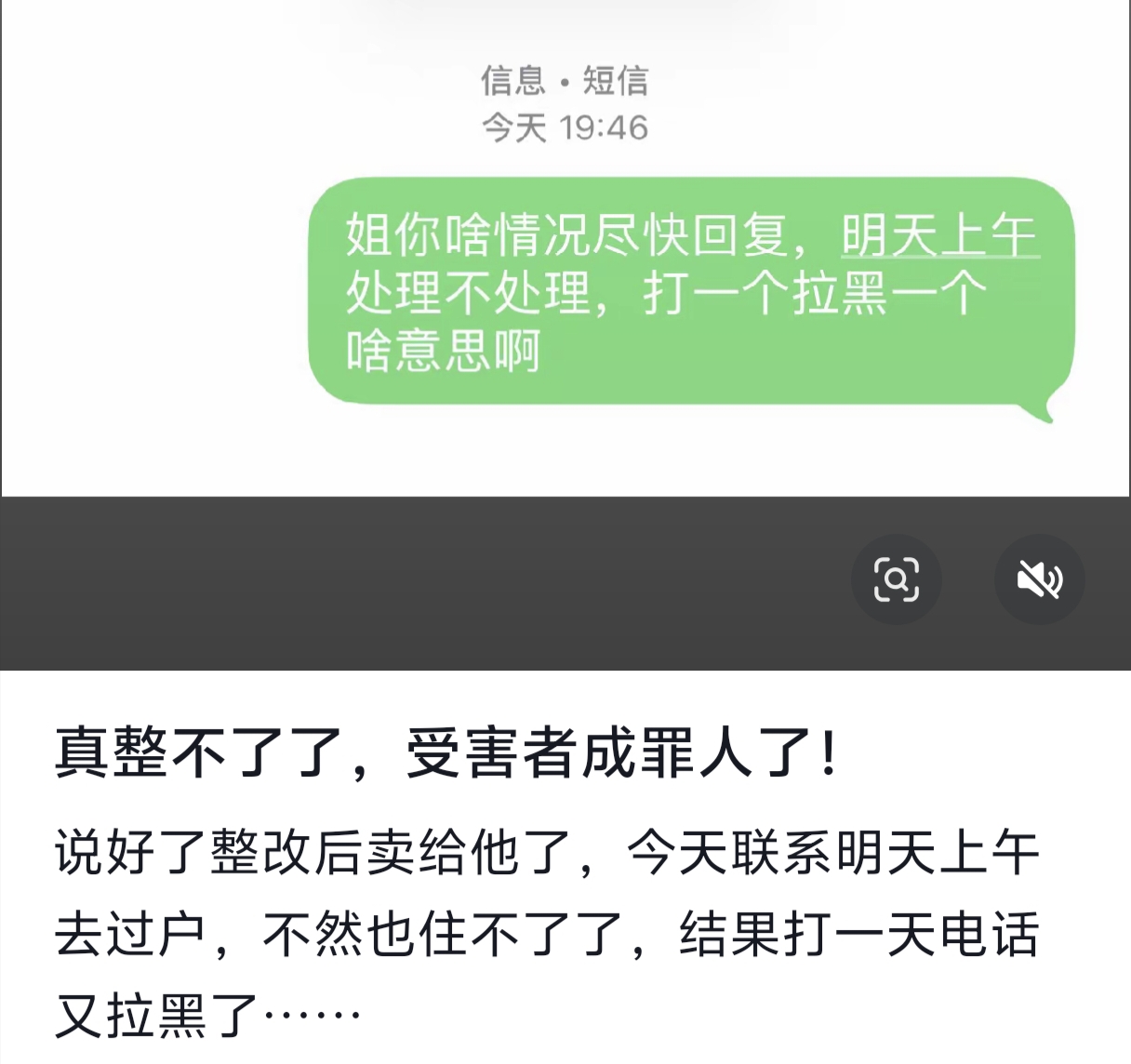 原来女子已经和邻居协商好,整改好后,房子就卖给邻居,约的明天上午就去过户,没想到打电话却接连被拉黑,联系不上人,不知道邻居又在打什么主意啊,这样的邻居真不省心!