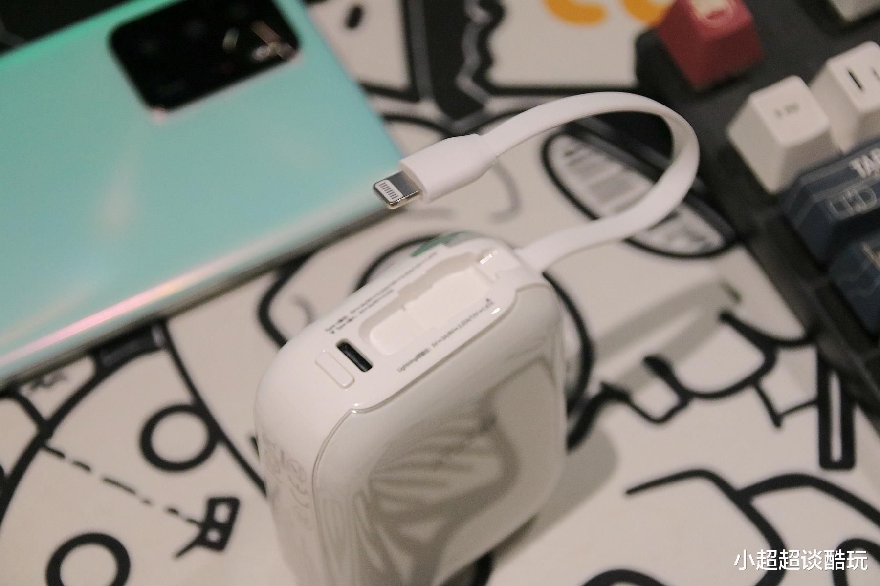 在解决了安全问题之后,充电速度和便利性就成为了我们关注的重点。西圣 PB-S 在这方面同样表现出色,它内置了 Lightning和Type-C 快充线,无需我们额外携带充电线,真正实现了 “拎起就充,即插即用” 的便捷体验。