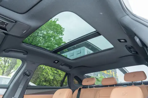 在后排乘坐感受上,比亚迪汉DM - i的设计比较传统,天窗采用了带遮阳帘可开关式的设计,加高的车身很好地应对了新能源车底盘过厚的问题,车内垂向空间较为出色,坐进去的舒适度不错。但腿部的前后空间并没有比汉系列高出太多,整体表现中规中矩。