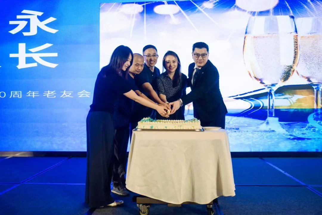 当视频播放完毕,印着“廿载隽永,同道久长”的蛋糕也被缓缓推上舞台,嘉宾与老友代表被邀请上台共同执刀切蛋糕。在大合影环节中,大家相互依偎、紧紧簇拥,镜头记录下的不仅是这一张张笑脸,更是毕马威杭州二十年来凝聚的深厚情谊和团结精神。