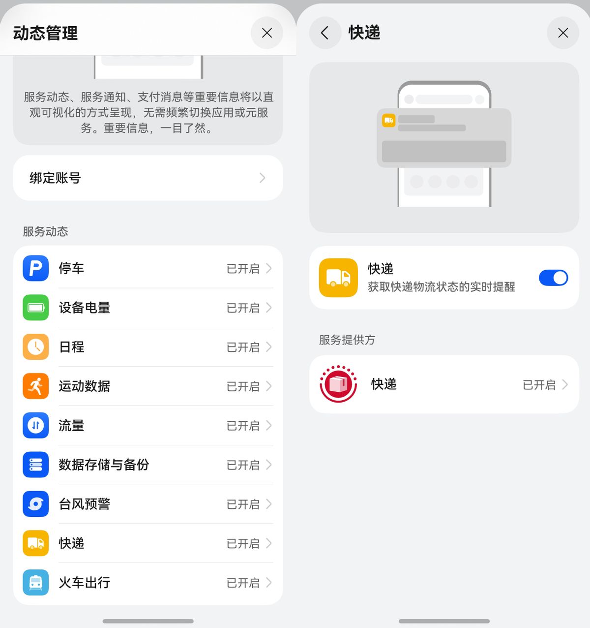 再说出行,负一屏比我还上心。关联了12306和航旅纵横后,负一屏顶部的服务动态卡片就成了我的行程提醒小助手。出发前几个小时,它会主动推送并置顶显示航班动态、高铁车次和座位号等行程信息。遇到车次变更或航班延误,它也会第一时间提醒,让我有时间调整行程安排,出行从从容容游刃有余~