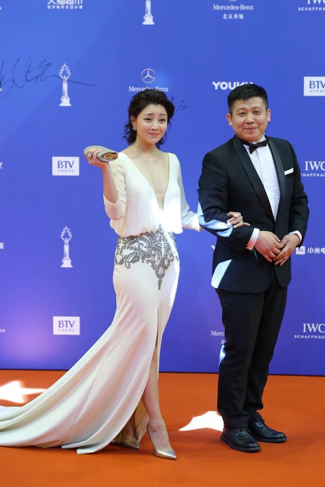 有意思的是,参加活动的男演员们,基本都穿着深色西装,领口敞着,袖口整齐,不显山不露水,他们的权威感来自于那些看不见的设计,而女演员总得在性感和端庄之间做选择,殷桃的三套衣服,等于悄悄撕掉了这张选择题的纸。