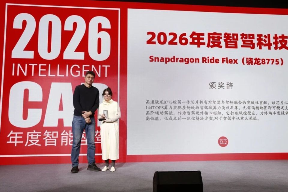 在十年科技类奖项中,9个奖项为中国科技公司和汽车企业获得,其中2026年度智驾科技由高通骁龙8775舱驾一体芯片获得。