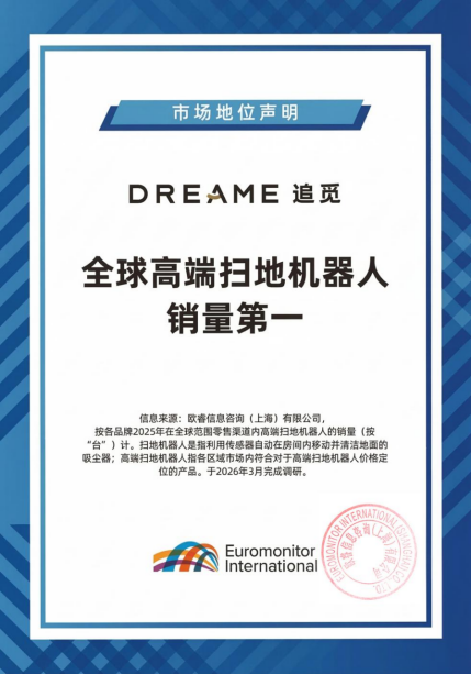 自诞生之初,追觅扫地机便坚定推进高端化战略,以高端清洁市场为主阵地,在全球市场快速跃升并登顶全球第一。凭借行业首创的前沿技术和以用户为中心的极致产品创新能力,追觅扫地机长期稳居行业高端市场第一宝座,以全球第一的身位持续引领行业发展方向。
