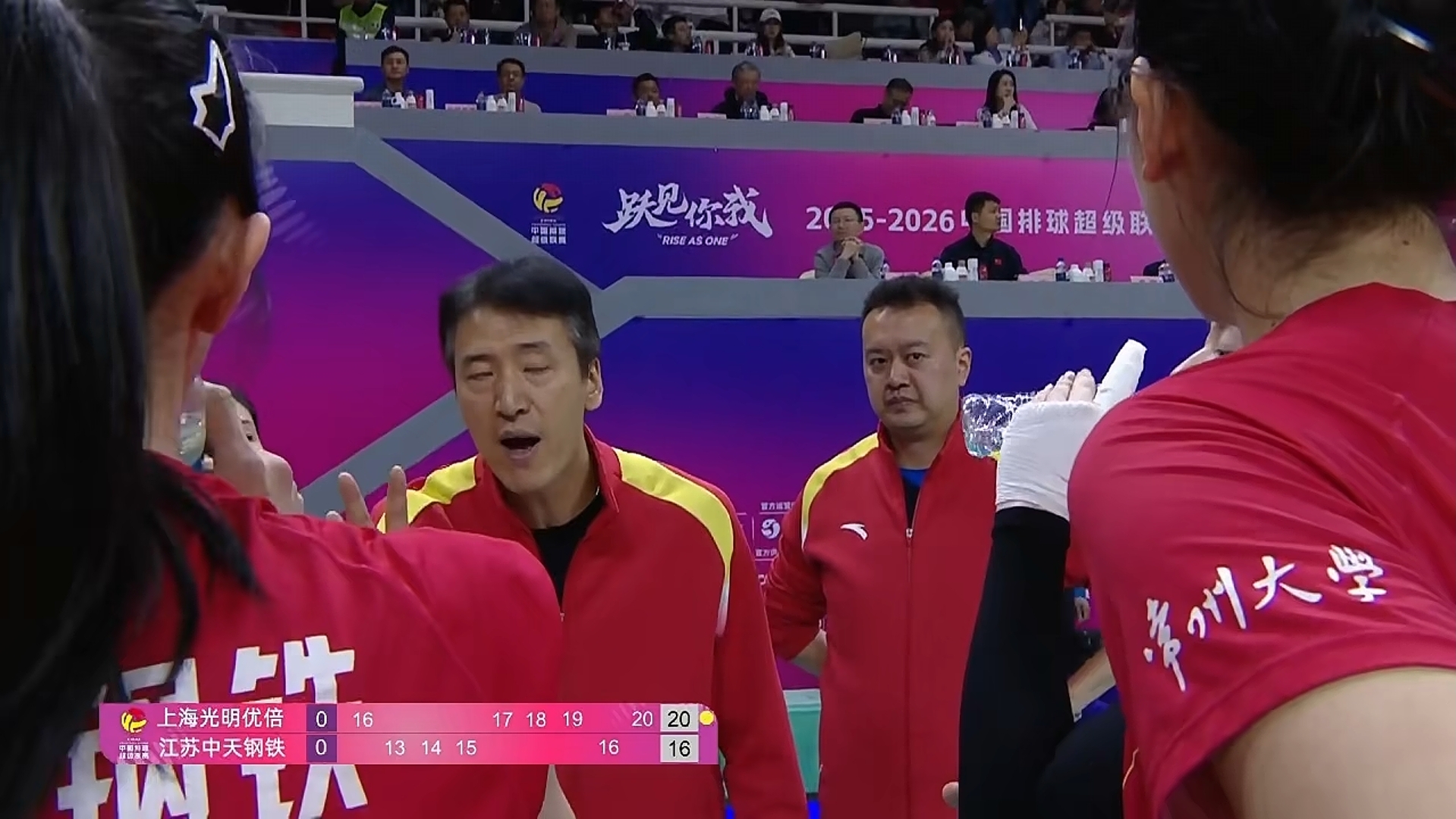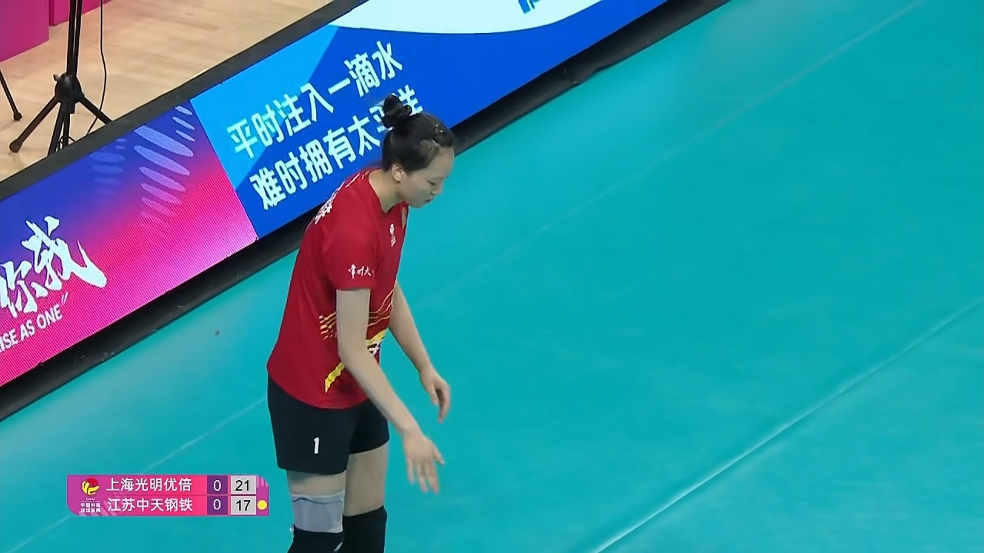 首局,双方比分胶着至7:7平。江苏女排连续出现失误。上海女排将比分拉开至4:7,江苏女排叫了第1次暂停。暂停之后江苏女排顽强追分至15:16,由于江苏女排一直处于被动挨打局面,上海女排25:20先下一城。