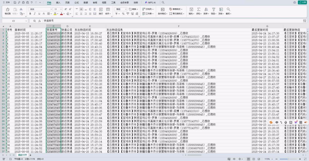 批量查询能力:支持一次性导入5000单,自动识别全球1200多家快递公司,1万单查询耗时约8分钟,物流轨迹与签收状态实时同步。