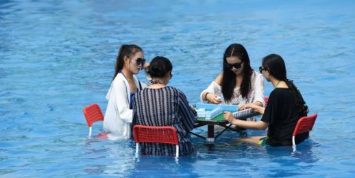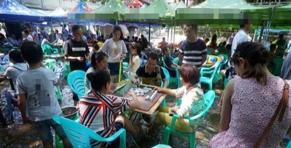 水中麻将大家玩过没有,你没有听错就是在水中支起的麻将摊,水也不会很深,刚刚没过凳子,真的别有一般风味。