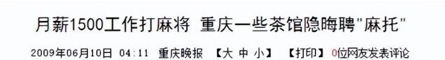 2、原文刊登于重庆晚报2009-06-10发布的关于《月薪1500工作打麻将 重庆一些茶馆隐晦聘"麻托"》的报道;