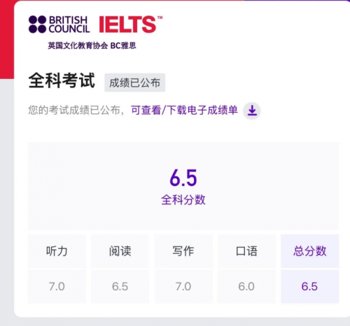 最后出分那天,我在地铁上刷到成绩,6.5。分数不高,但够用了,够我去投简历试试外企了。