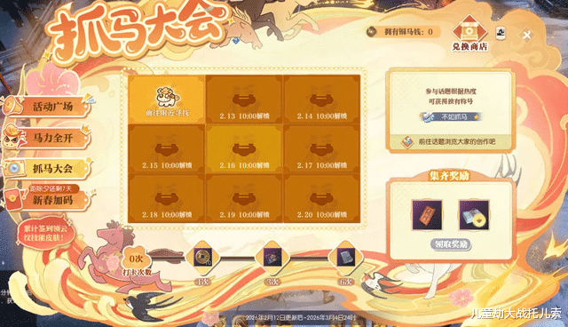除此之外,各种春节活动也让人眼花缭乱,例如春节主题活动【金马贺岁】,除了每天签到都能拿到头饰【雪影送福】以及绝技残页等好礼,参与活动广场的各项趣味活动,还能获得数量不等的活动代币【铜马钱】,兑换食神主题时装,以及庄园组件【马跃春宵】等福利。