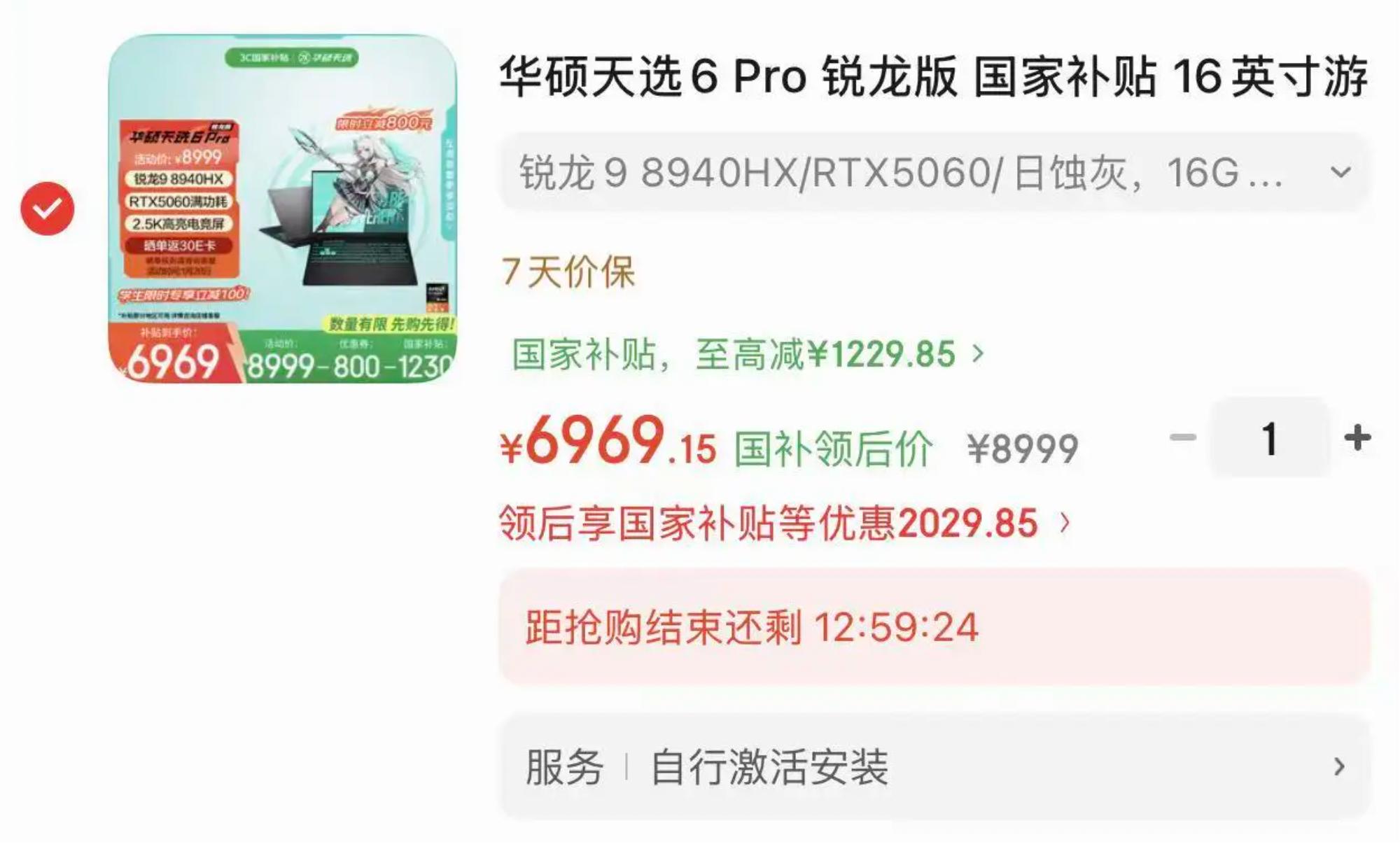 另一方面,尚未涨价的2025年款笔记本正处在一个价格与价值的黄金平衡点。厂商基于原有供应链成本定价,库存产品还未完全反映存储芯片上涨的成本。特别是学生党,在7000元价位段仍能买到一线大牌的高性能游戏本。例如近期备受关注的华硕天选6 Pro锐龙版,搭载RTX 5060显卡,叠加多重活动下价格干到了7000元以内。