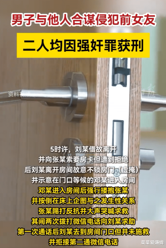他们把小张灌了酒,带到宾馆开房。刘某完事儿后,故意不锁门,就留个缝儿,还朝门口等着的邓某使眼色。邓某就那么大摇大摆进去了!小张当时就懵了,质问、反抗、哭喊、求救,拼了命地踢打。绝望中,她两次给刚离开的刘某打微信电话求救。第一次,刘某倒是到门口了,可他就那么干站着,听着里面的动静,没进去!第二次电话,他直接给挂了!我的天,你能想象小张那一刻的绝望吗?那微信电话的呼叫声,就像扔进黑洞里的石子,连个回音儿都听不着。最后是宾馆老板被吵醒了,过来查看,刘某才装模作样地敲门。这心,真是黑透了,烂透了!