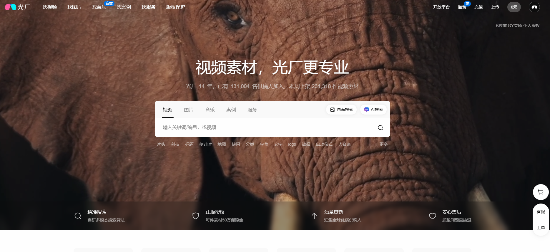 光厂是国内专业正版视频素材平台,覆盖视频素材、AE模板、Pr模板、C4D模型、图片、音乐、音效等内容。官网显示,光厂已有14年发展积累,平台聚集超过13万名供稿人,并持续上架大量视频素材。