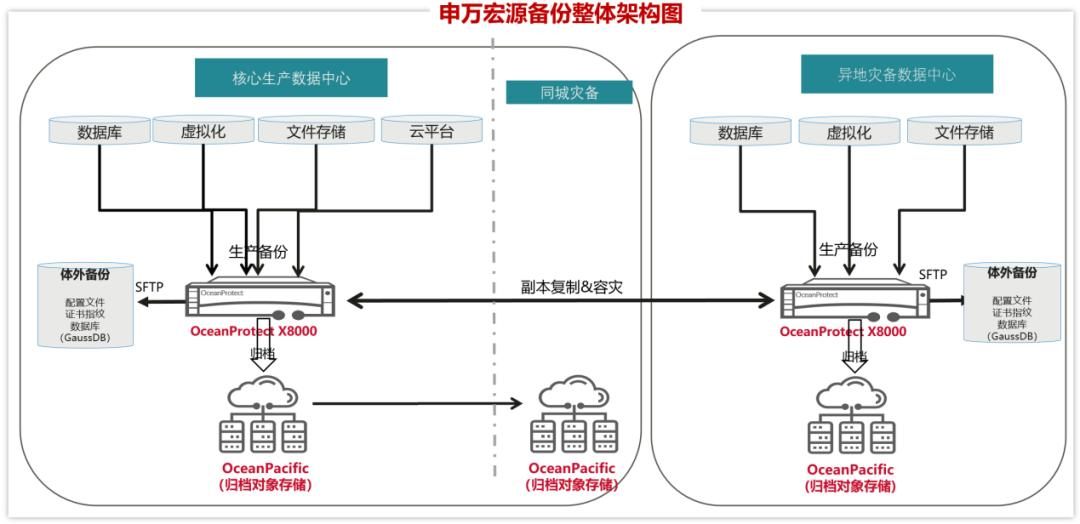 华为数据存储帮助申万宏源云上/云下业务系统集中备份,不管是数据库、虚拟化、文件系统还是云平台,多种应用一套就全部搞定,极大避免了复杂臃肿备份系统带来的管理运营难题。
