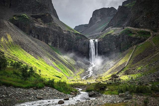 再说这瀑布,水是真壮观,从山上倾泻而下,气势磅礴。