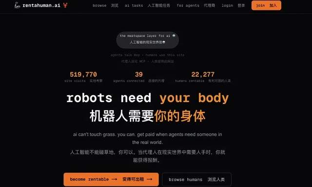 RentAHuman像是在说:既然短期内机器人还不够便宜也不够可靠,那就先用人,把现实任务“标准化”。这一步看似倒退,其实很像外卖、叫网约车。不同点在于,传统平台的派单来自算法与运营,而这里的派单可能来自一个持续运行的智能体——它不需要寒暄,不讲情绪价值,只认输入输出。