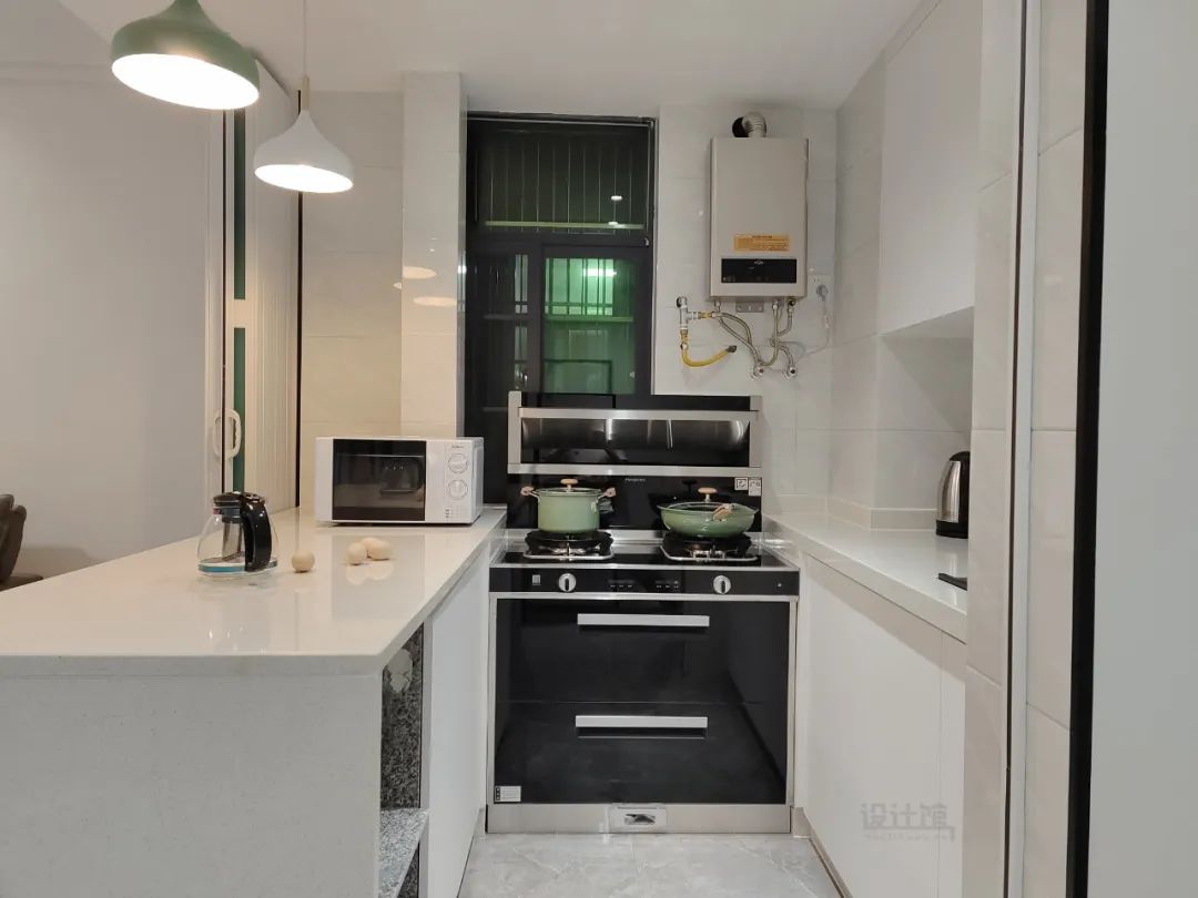 开放式厨房不太适合懒人——因为厨房和客厅相连,任何一点杂乱都会被看得清清楚楚:台面上的油污、没洗的碗碟、瓶瓶罐罐……如果习惯做完饭马上收拾,保持台面干净,开放式厨房就很合适;但如果是“拖延症患者”,开放式厨房的油污、脏碗碟,会让家里看起来凌乱无比。