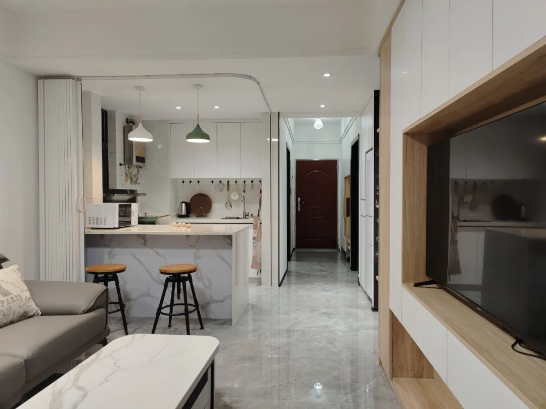 对于小户型来说,开放式厨房是救星——拆除厨房与客厅之间的隔墙,能让原本拥挤的小厨房和小客厅,都变得通透开阔。比如我母亲的房子就是面积很小,厨房才4平米,做成开放式后,空间开阔了很多。