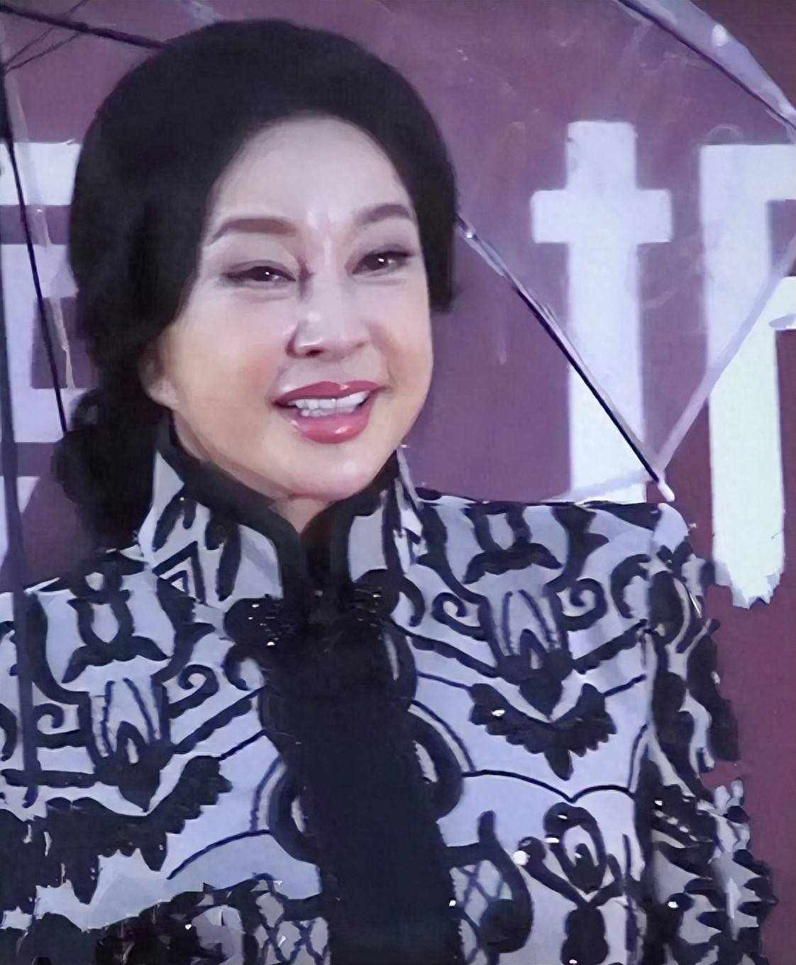 75岁的刘晓庆站在红毯上,笑容灿烂,姿态优雅。