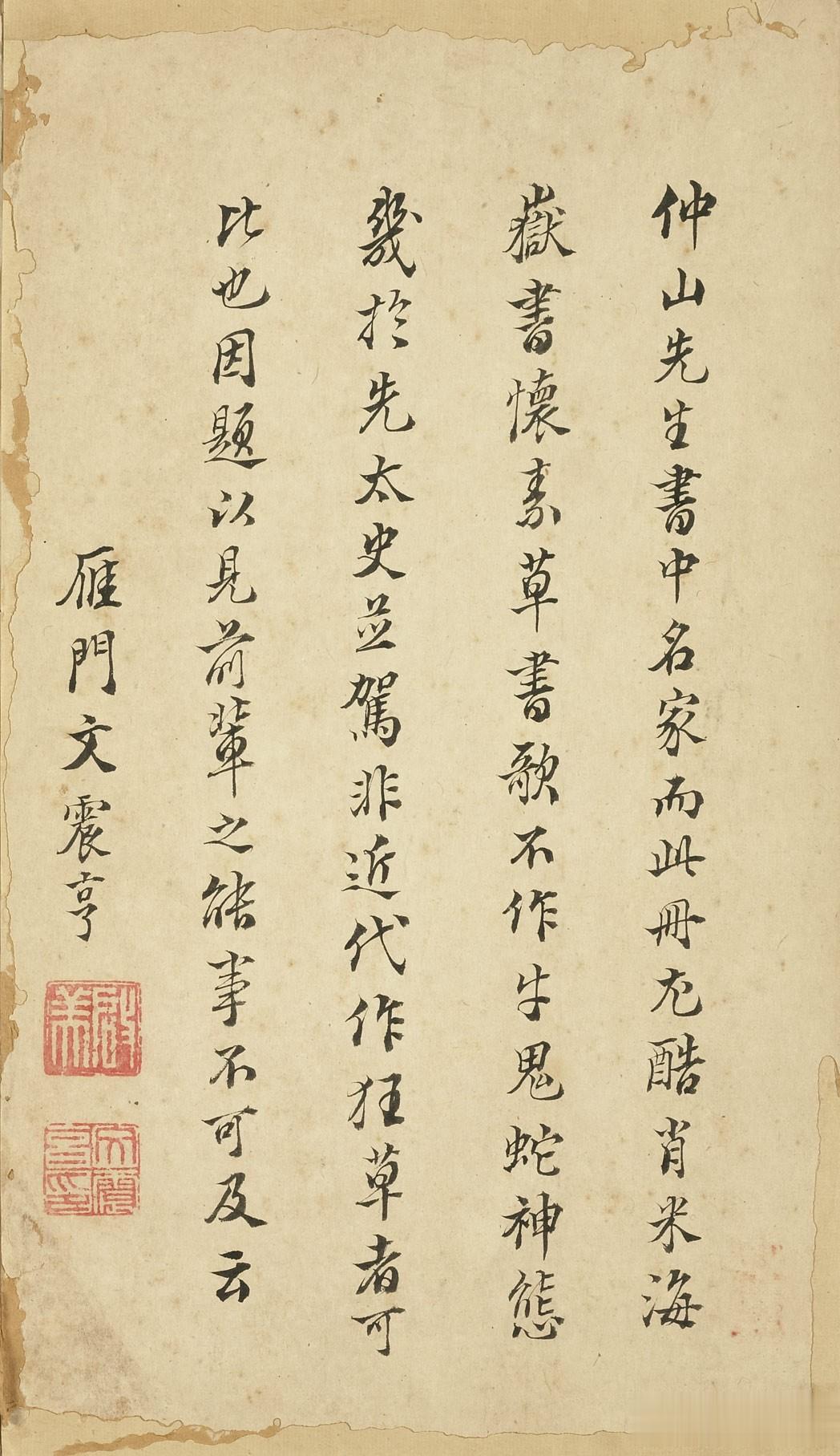 册页末尾是文震亨手写题跋,感兴趣可以读一下他的墨迹。