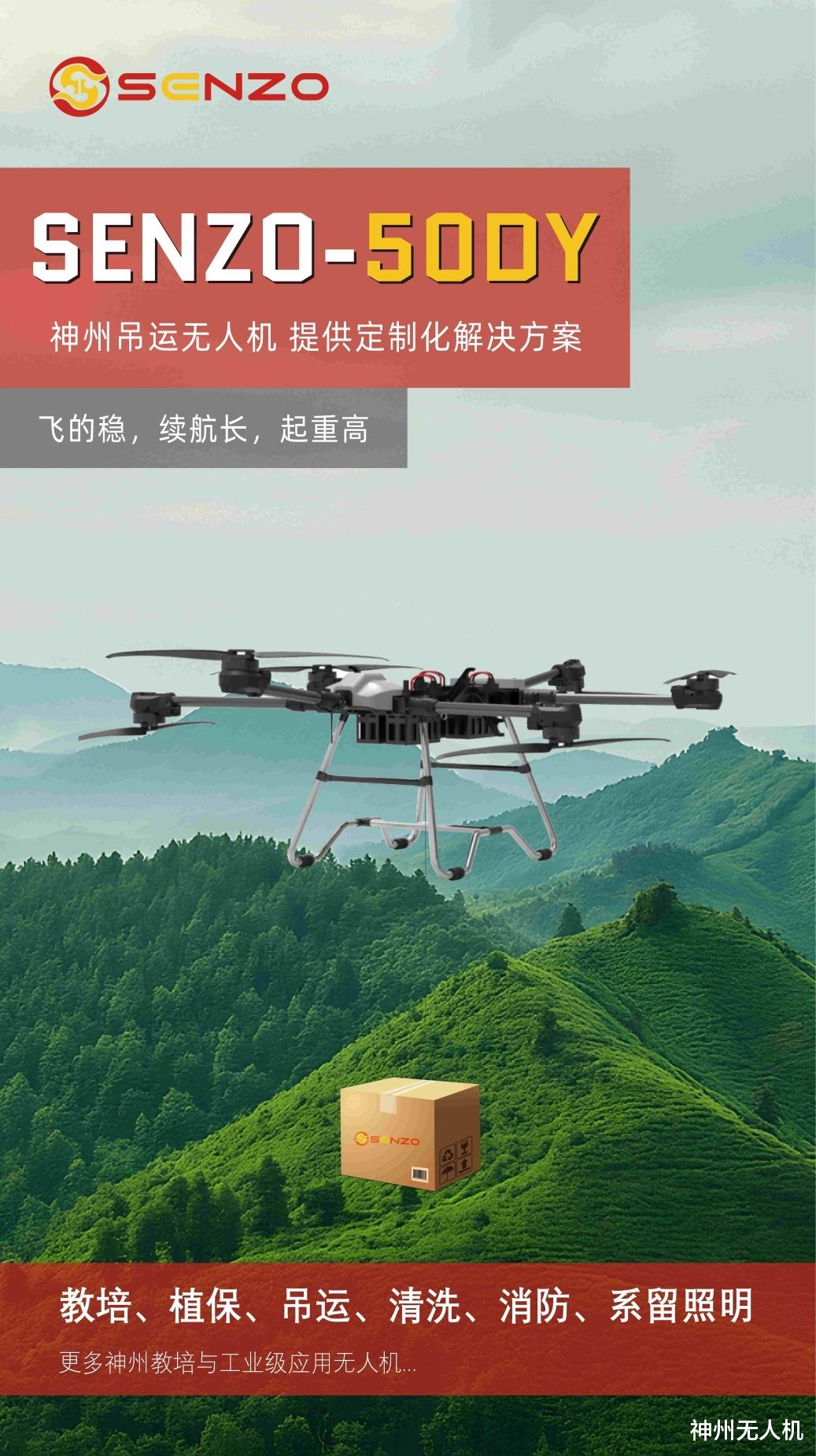·偏远地区物资补给:山区、海岛等区域运输距离远、地形复杂。续航(>60分钟)和稳定性(抗风6级以上)是生命线,载重需求相对中等(50-100公斤),确保基础物资如医药、食品的持续安全送达。神州无人机SENZO-100DY 凭借20分钟续航与7级抗风能力在此场景优势显著。