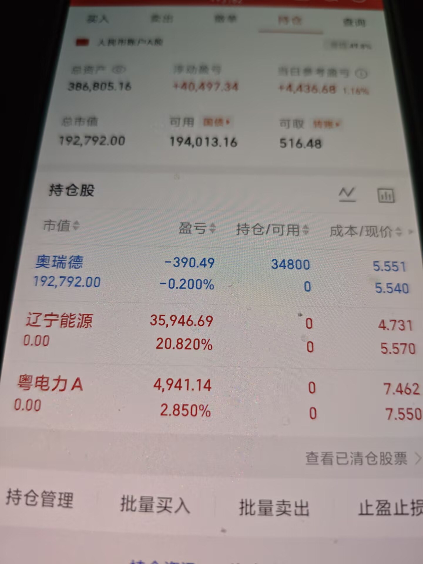 然后竞价我把辽宁能源,和粤电力A,都砸了。砸了后下了奥瑞德。