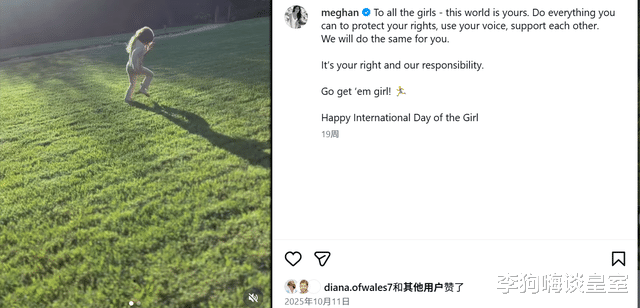 “这条动态的受众互动量爆表,反响空前。毫无疑问,梅根会拿这些数据当理由,游说哈里放宽晒孩子的限制。”