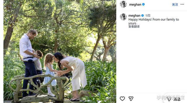 但如今,这一立场似乎开始松动,梅根逐渐在网上分享更多阿奇和莉莉贝特的日常。两个孩子都出现在苏塞克斯夫妇的年度圣诞贺卡上(只是背对镜头),梅根的其他 Ins 动态也晒过和孩子们一起烘焙、采摘蔬菜的画面。