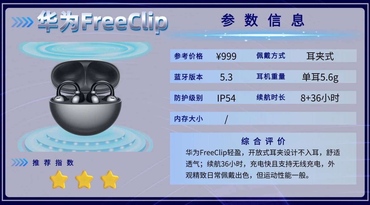 华为FreeClip小巧精致、佩戴舒适、品牌可靠,适合日常通勤、办公或轻运动使用。客观来看,它的音质和防护能力对高强度运动不够,性价比偏低,对于注重运动稳定性和抗汗能力的用户并不理想。