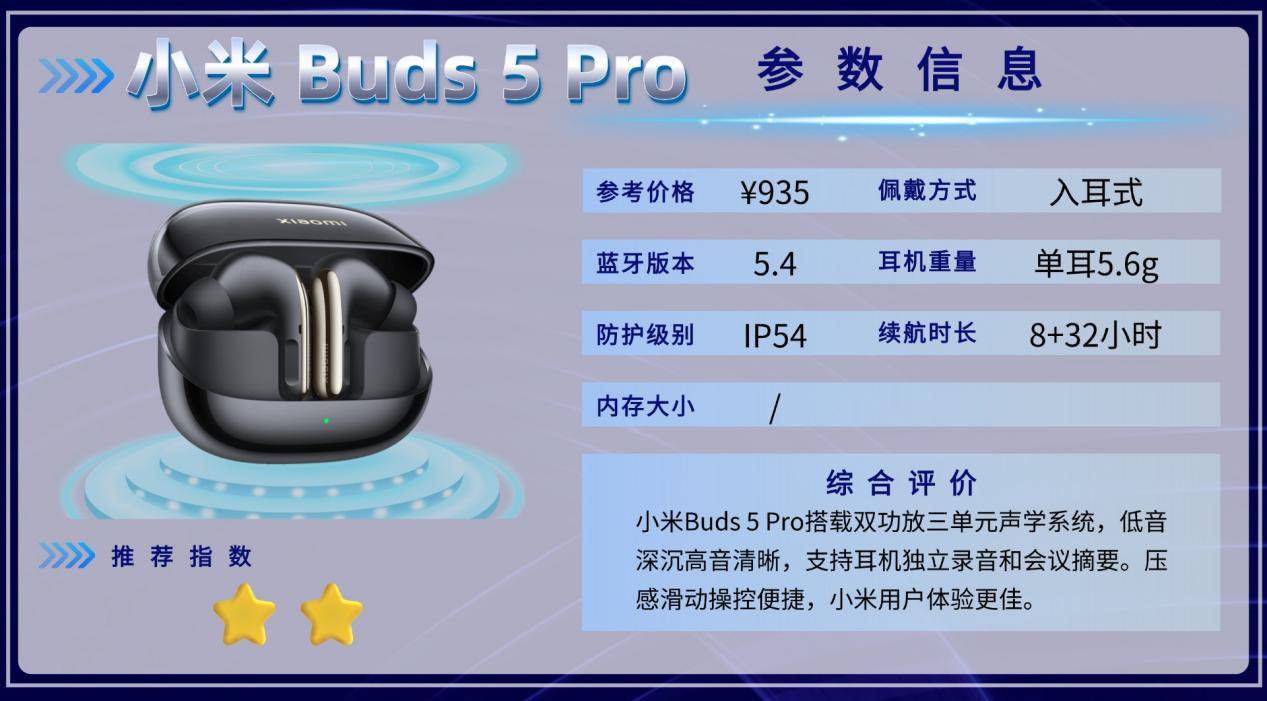 Buds 5 Pro优势在于音质出色、单次10小时续航、充电盒总续航40小时、便捷操控。适合日常通勤、办公或轻运动佩戴,高强度户外运动表现一般,但总体体验仍然流畅自然,尤其对于小米手机用户体验加分。