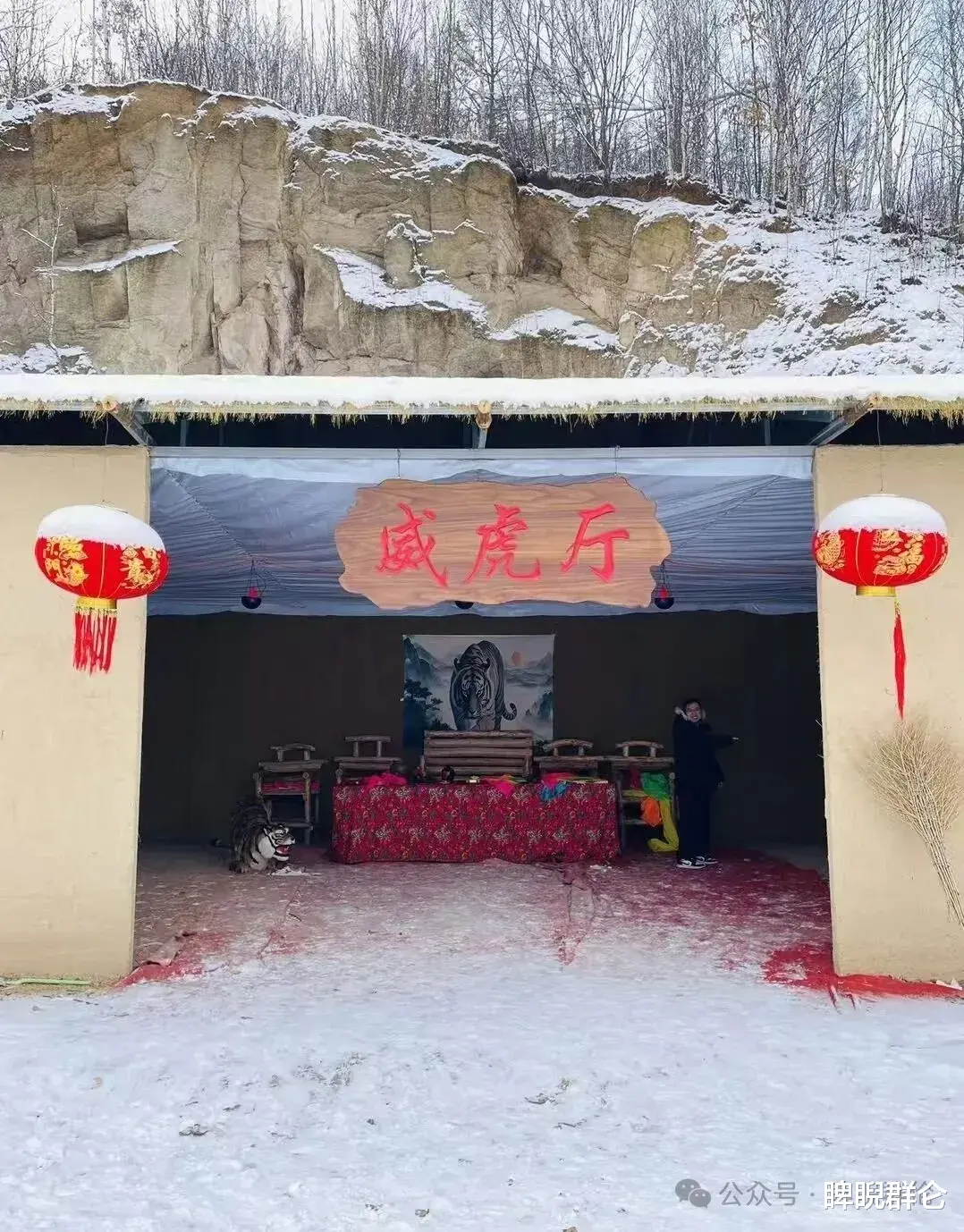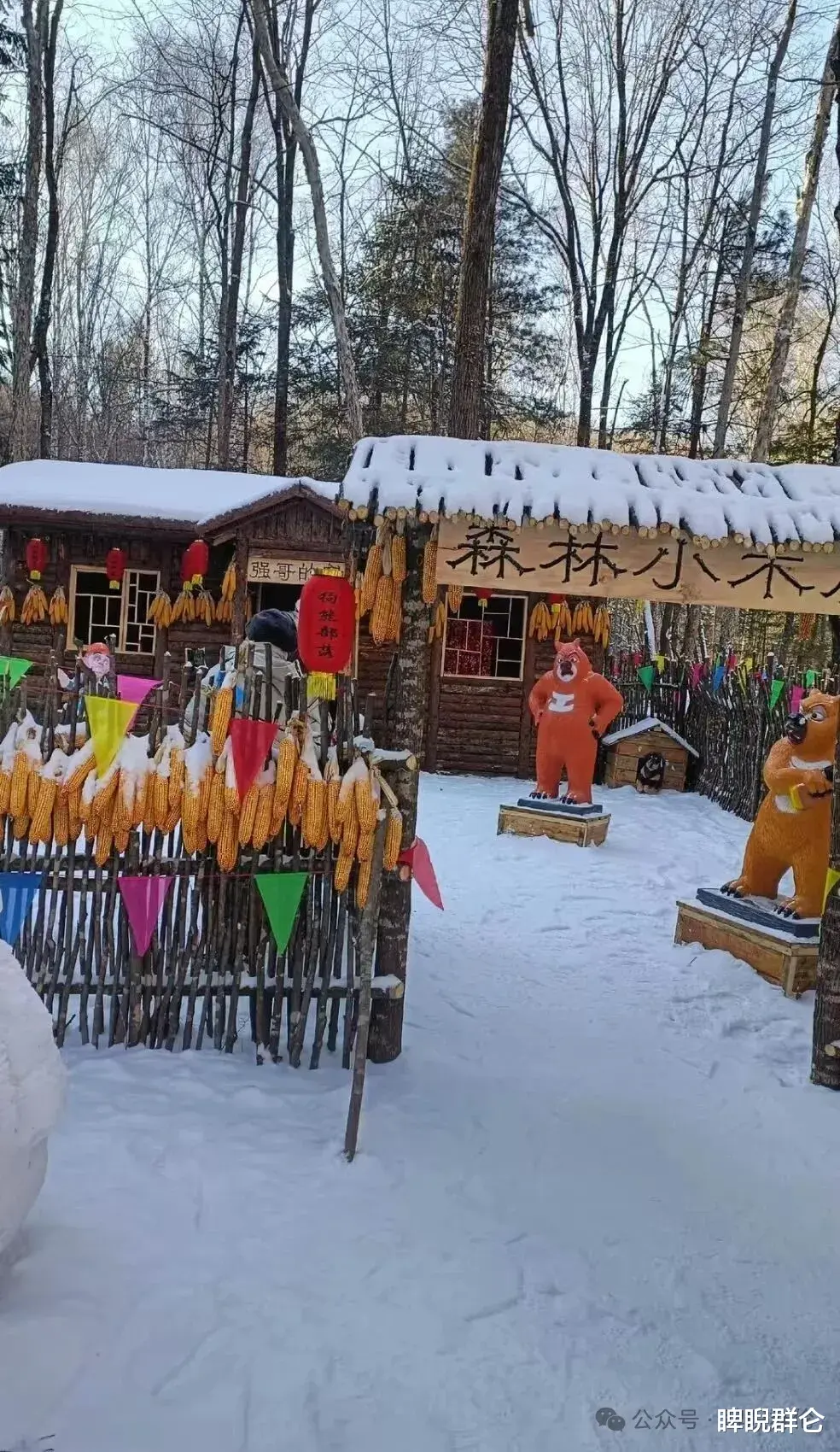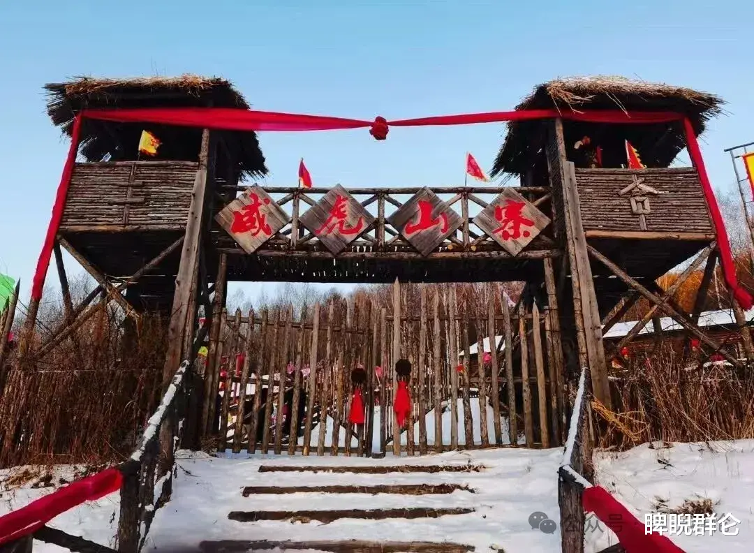 看点:根据经典电影《林海雪原》场景还原的互动体验区。木质的寨门、哨塔、酒肆,瞬间将你带入那段剿匪传奇。这里不仅有景,更有身着服装的村民演绎互动,讲述生动的关东故事。