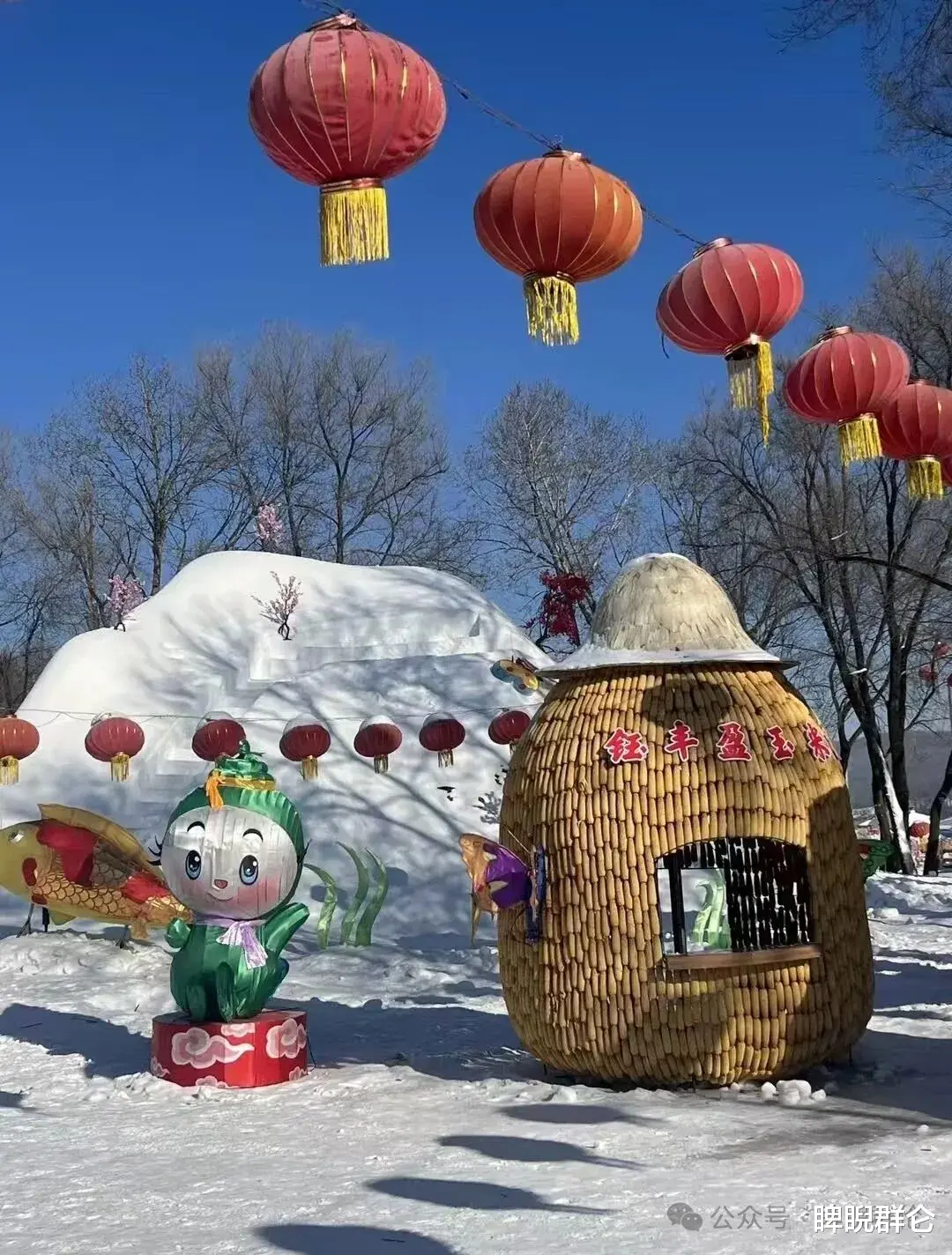 看点:用金灿灿的玉米打造的“超级大玉米”雕塑和“黄金屋”,是二合雪乡最具视觉冲击力的地标之一。它不仅是创意艺术,更是对这片黑土地农耕文化的致敬。