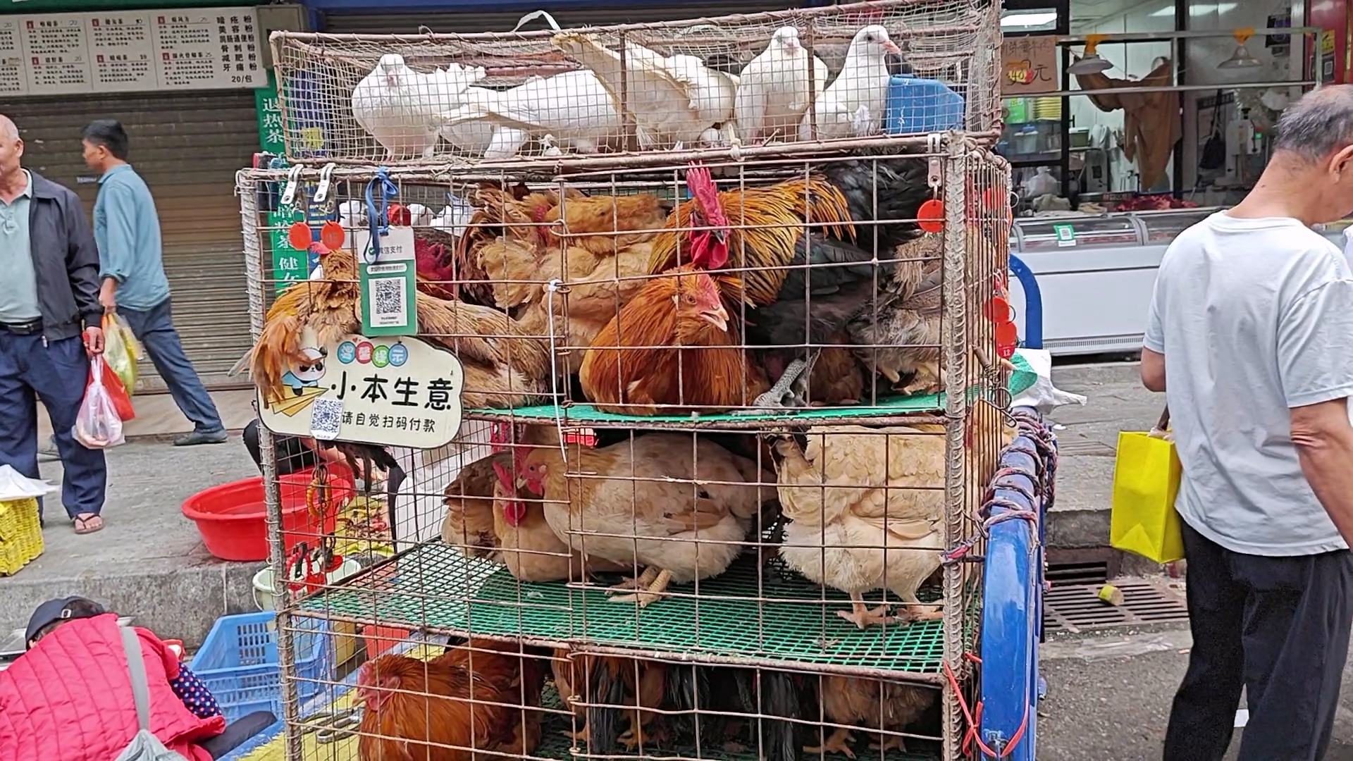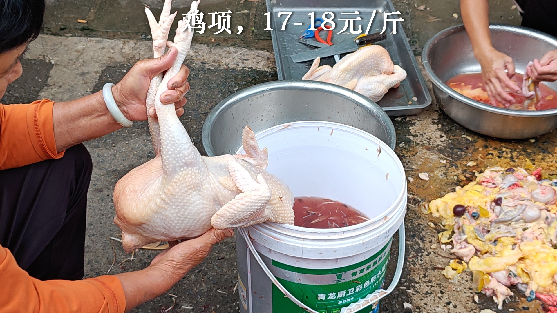 五、活禽:今天看到很多人买鸡,劏鸡佬处理不过来,躺了一地等拔毛开膛的鸡。