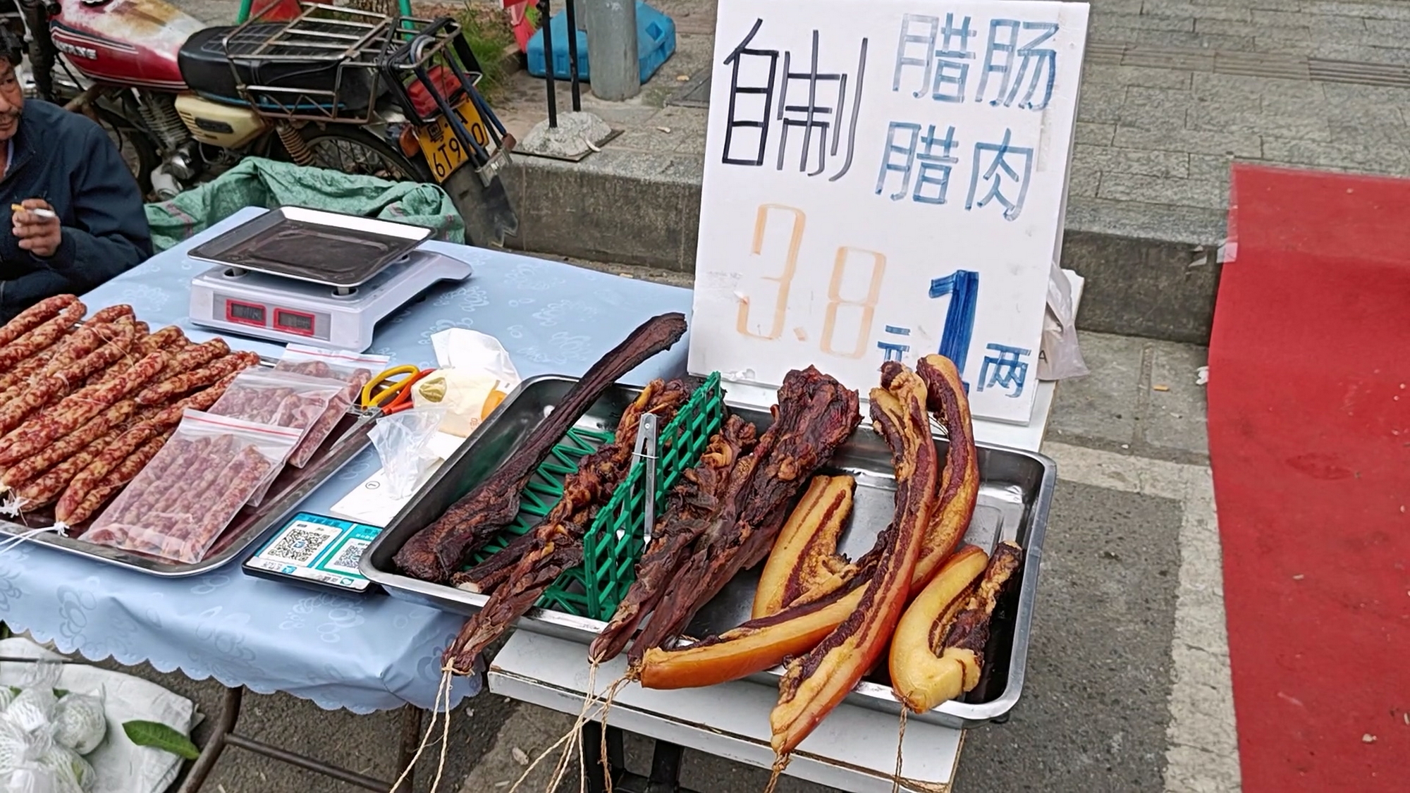1、本地腊肉和腊肠,都是38一斤。腊肉肉眼可见,制作水准很好,我很喜欢。腊肠就肥了点,湿了点。