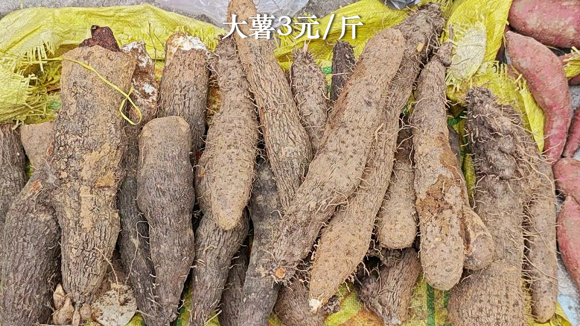 1、大薯,3元一斤,我误以为是淮山薯,阿叔告诉我是大薯,但是好吃的品种,所以3元不贵。另外还有一种我家里叫牛卵薯的。