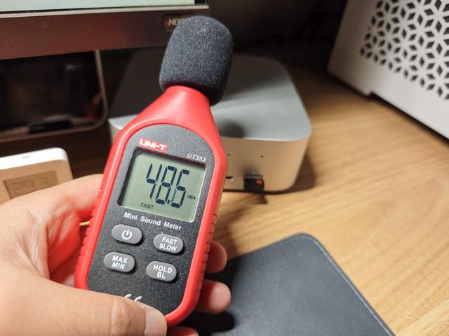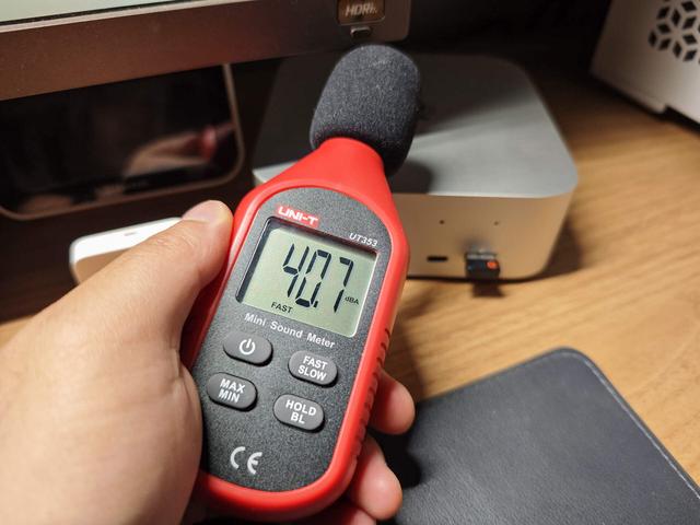 桌面/网页浏览等低负载:38.7分贝(几乎无声,无法与环境噪音区分)54W模式30分钟FPU烤机:机位48.5分贝,人位42.7分贝65W模式30分钟FPU烤机:机位50.9分贝,人位43.5分贝