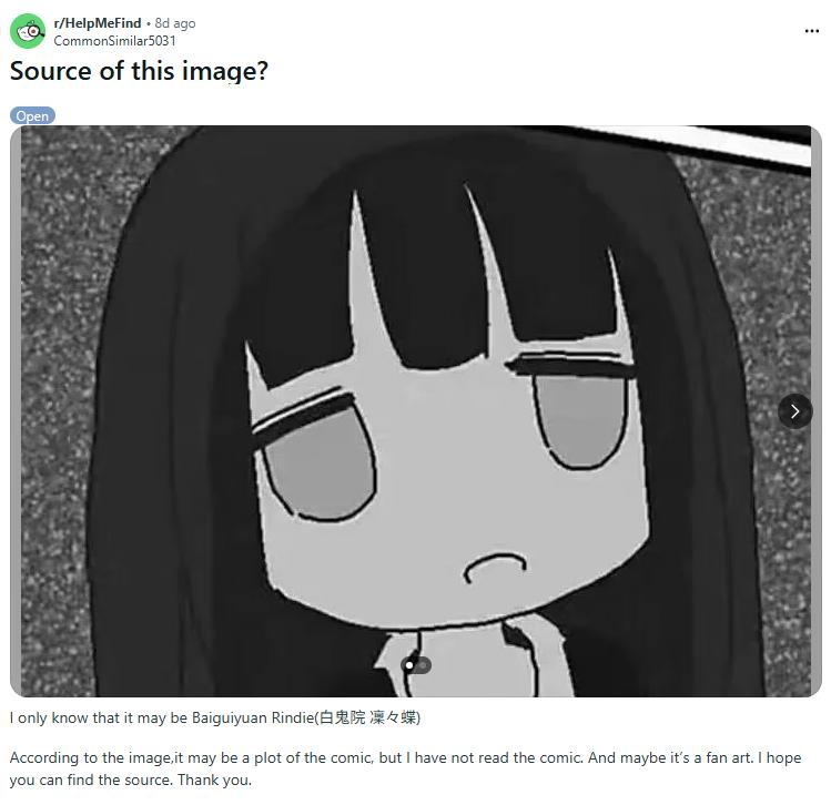 不过这次发现也为众人提供了更多其它线索,比如新发现的两张14酱图片中,有一张的右上角似乎是漫画格子的框线边缘,这意味着14酱也许是哪个漫画里的人物。