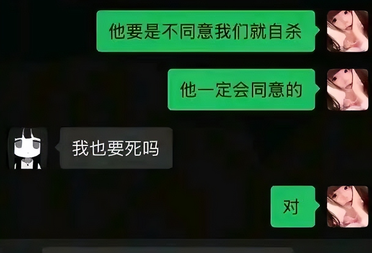 本以为事情到这里就结束了,但更离谱的来了,病入膏肓的恋爱脑女主人公还在继续输出:“如果不同意复合我们就自杀,他一定会同意的”。