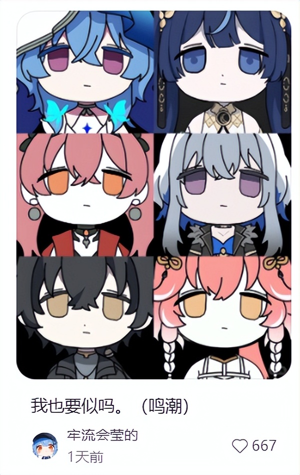 现在你打开手机搜一下关键词,就能看到不少二次元人物幽幽地睁着大眼睛,面无表情地盯着你,确实是有点子诡异了。