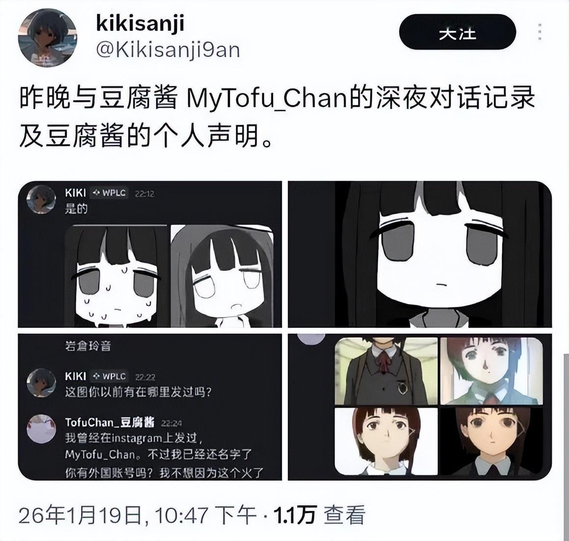 kikisanji接连发布了自己和朋友“豆腐酱”的聊天记录,以及“豆腐酱”创作时的参考图片,希望能打消大家的疑虑。