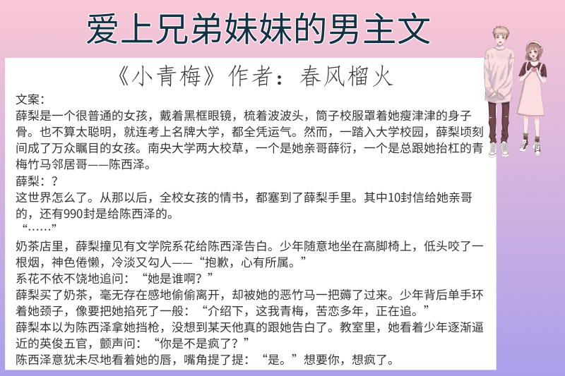 哈喽,大家好,这里是不止推书!今天给大家带来的是6本爱上兄弟妹妹的男主文,强推《偷偷藏不住》去爱一个人,不顾所有!