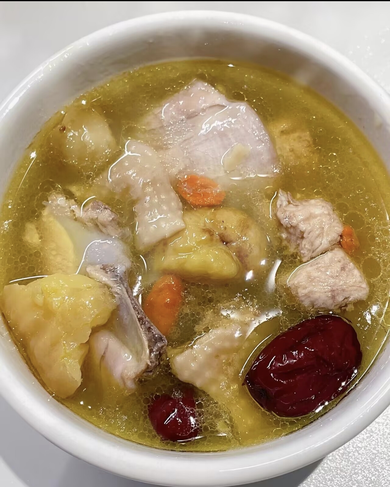 一碗成功的老母鸡汤,汤色清澈金黄,表面浮着一层薄薄的油光,喝起来先是浓郁的鸡香,然后是香菇的 earthy 清香,最后是红枣的回甘。鸡肉虽然炖得酥烂,但撕开来还是一丝丝的,蘸点酱油就能吃下一大碗。冬天喝全身暖洋洋,夏天喝出一身透汗,舒服极了。更重要的是,炖汤的过程本身就是一种治愈。在这个什么都快的时代,能花几个小时专心为一锅汤守候,何尝不是一种难得的生活仪式感?