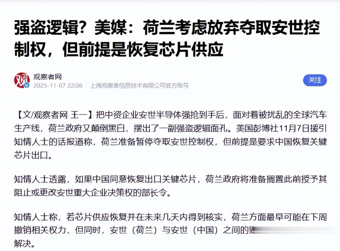 换句话说,在地缘政治博弈当中,荷兰从制裁中方企业正式抢夺安世控股权力之后,就已经明确的向世界宣告荷兰与美国站在一个阵线。