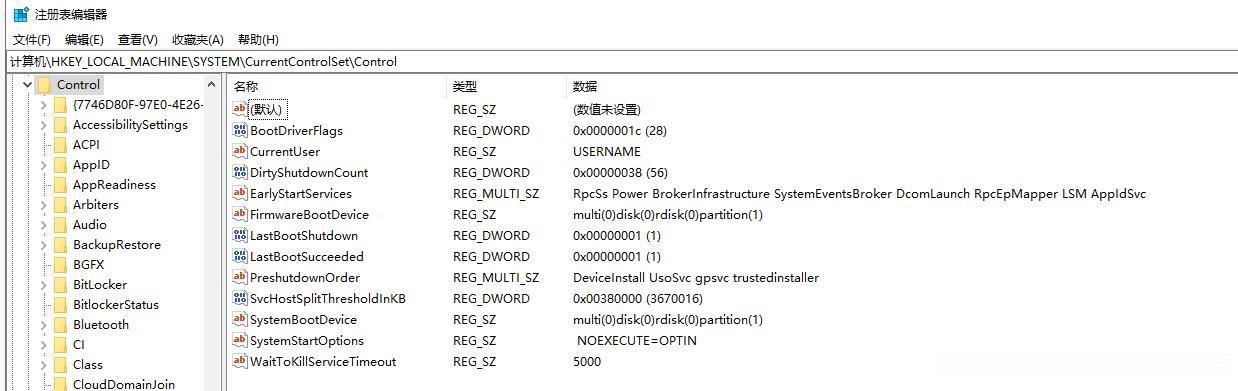 定位路径:HKEY_LOCAL_MACHINE\SYSTEM\CurrentControlSet\Control