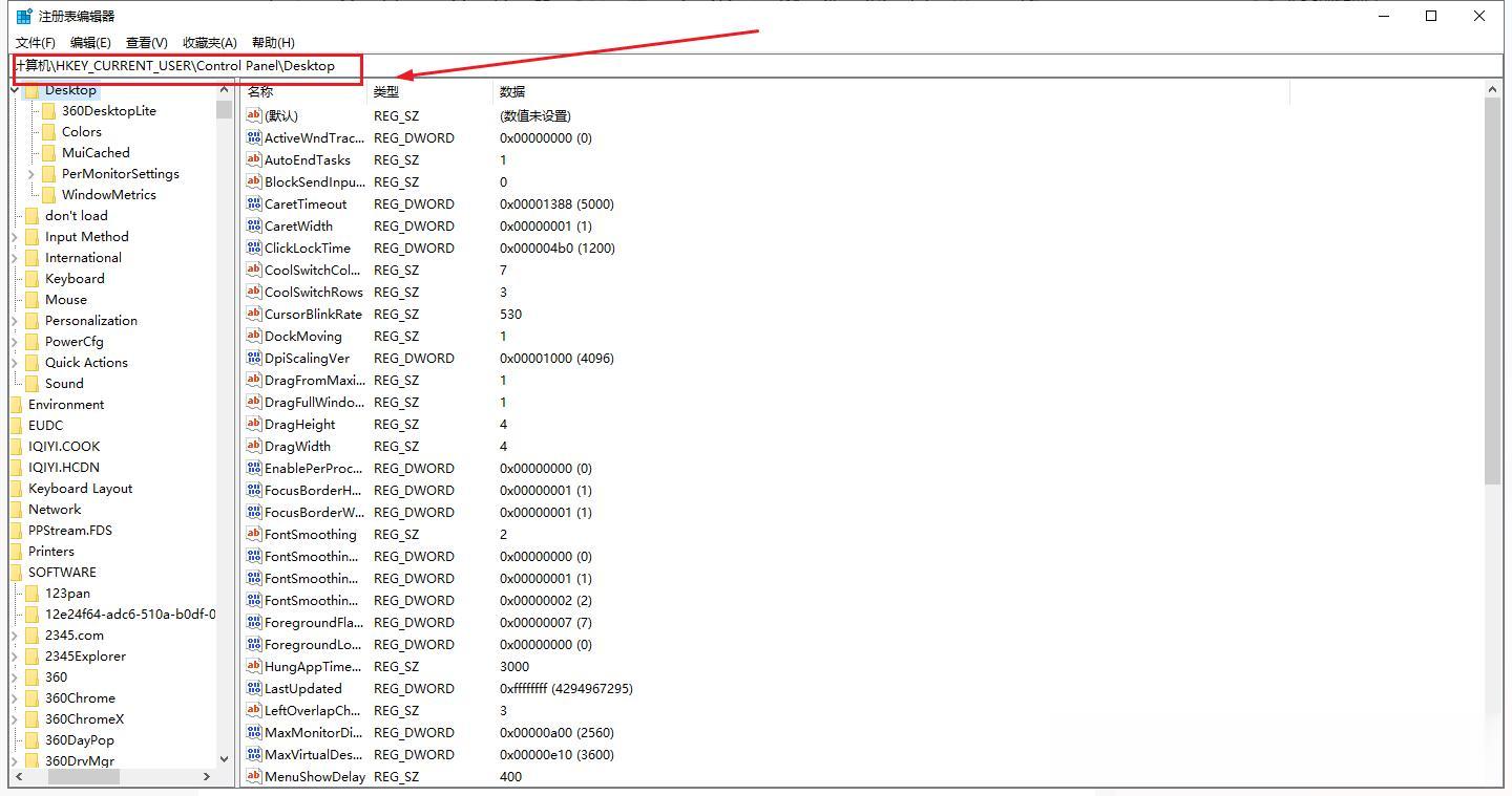 定位路径:HKEY_CURRENT_USER\Control Panel\Desktop