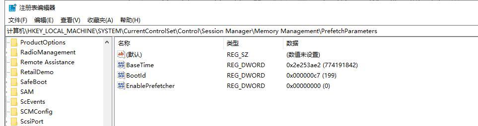 定位路径:HKEY_LOCAL_MACHINE\SYSTEM\CurrentControlSet\Control\Session Manager\Memory Management\PrefetchParameters