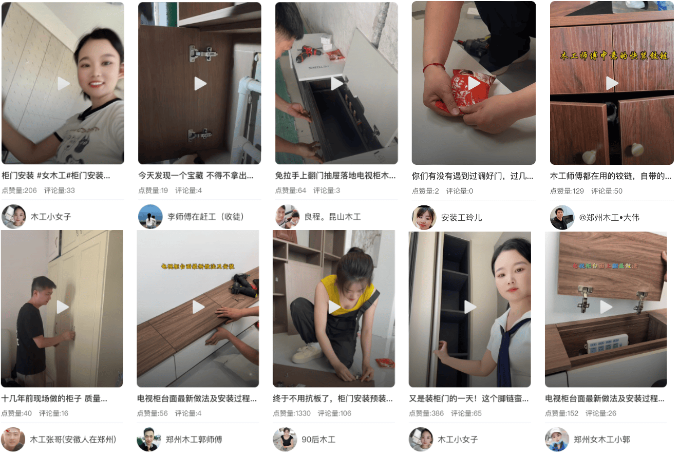 与传统KOL推广相比,KOC内容的互动率明显更高。安装工和木工师傅的内容虽然制作相对简单,但因其真实性和专业性,评论区往往充满了真实用户的咨询和交流,形成了良好的互动氛围。